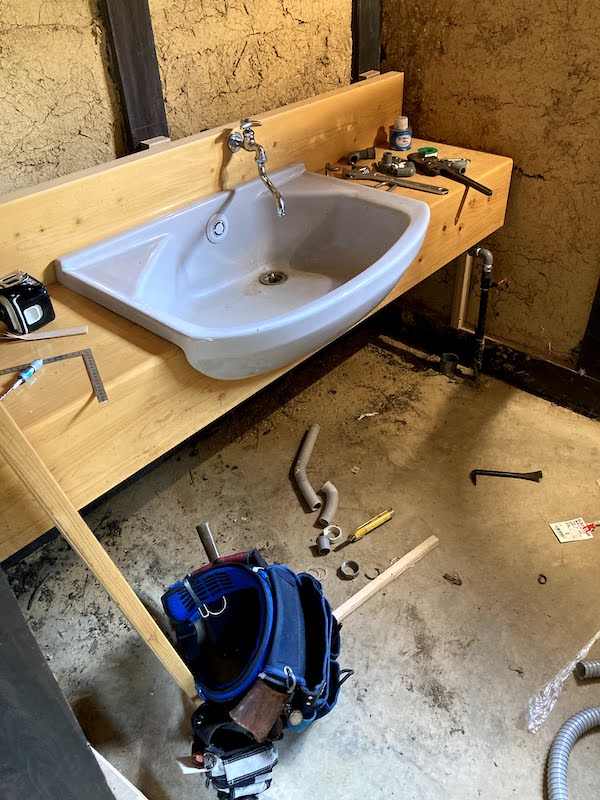 水道管の継ぎ手部分が緩んで応急処置でしのいでいましたが、前回の定例会の時に、大崩壊!